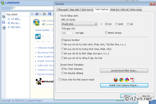 Đầu tiên bật Lingoes và chọn Cấu hình/chọn thẻ Text Capture